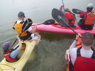 Racing a raft of kayaks, a new rodeo event we learned from Kelly Blades. |