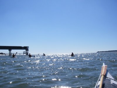 We asked Ronnie and Marsha to coach us on several levels simultaneously: as paddlers, as instructors and as out-of-town visitors. Today was a mix of all three, with critiques of our techniques and teaching peppered with unfamiliar vistas and conditions. We saw jellyfish, barnacles and fish; marshes and hammocks; gulls and an eagle.