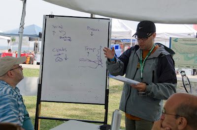 …paddle demo boats (here, Liz Burnside, who organized the first MEC Toronto Paddlefest in 2005 and continues to put her all into it, answers questions about the P&H Cetus)…